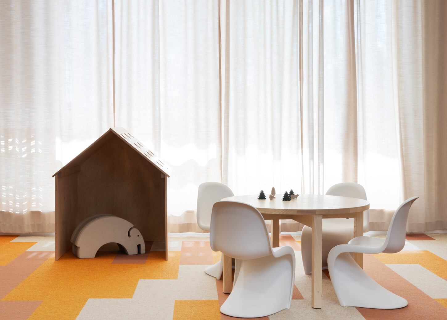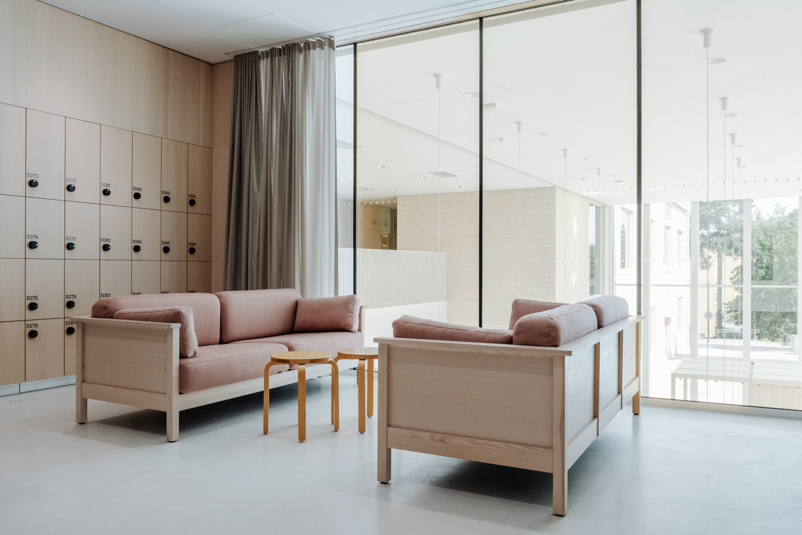 Rakennuksen suuret ikkunat avautuvat upeaan merimaisemaan ja tätä haluttiinkin korostaa luonnonmukaisilla väri- ja materiaalivalinnoilla. Inspiraatio suunnitteluun saatiin juuri ympärillä olevasta suomalaisesta luonnosta. Kokonaisuuden väri- ja materiaalipaletti koostuu aidoista materiaaleista ja luonnon ja meren eri sävyistä jotka sopivat ikkunasta näkyvään maisemaan.