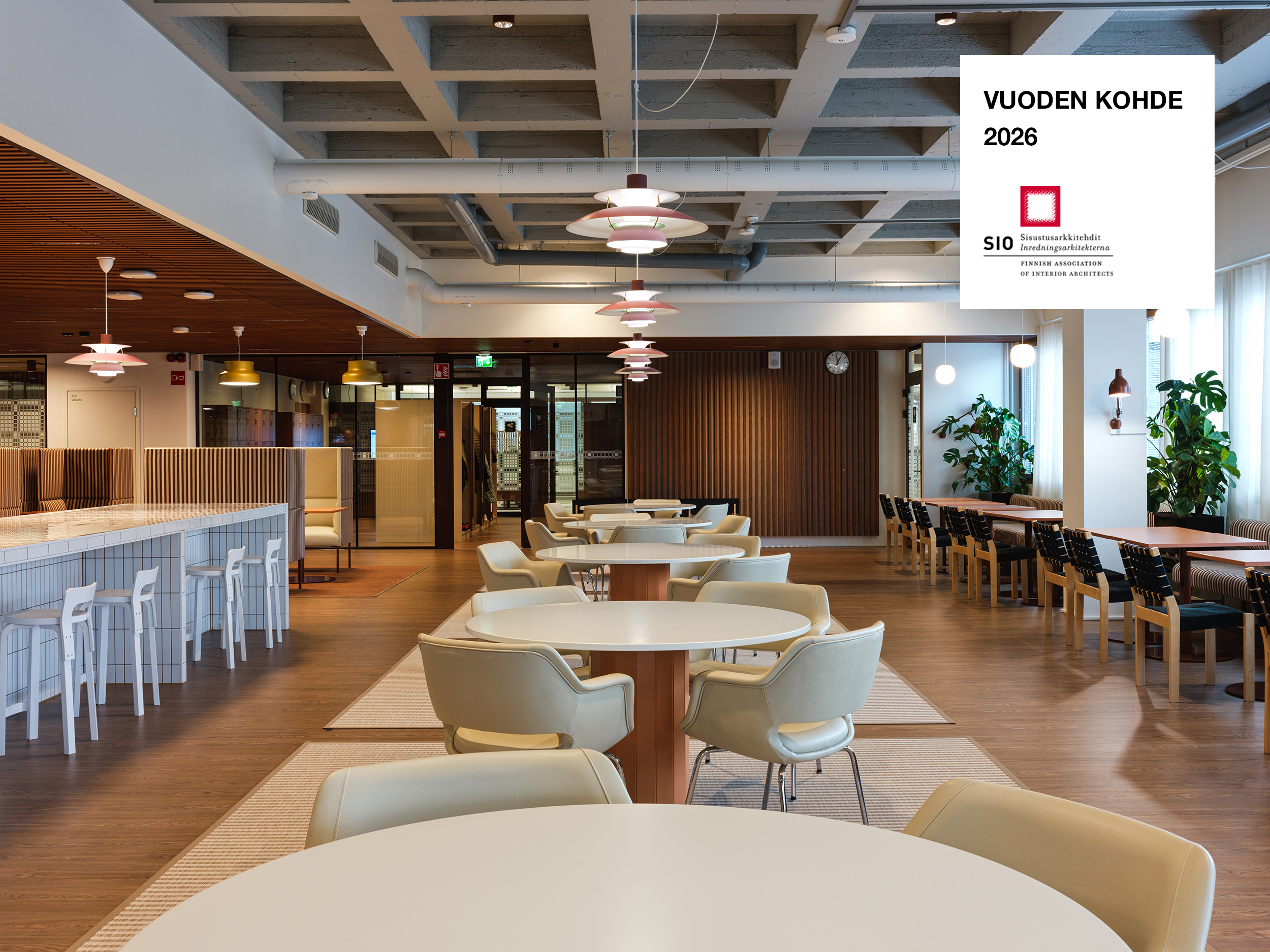 Lämmin kiitos Sisustusarkkitehdit SIO:n jurylle arvokkaasta tunnustuksesta sekä Kelalle luottamuksesta ja rohkeasta yhteistyöstä. Kiitos myös koko hanketiimille – tämä on aidosti yhteinen saavutus.